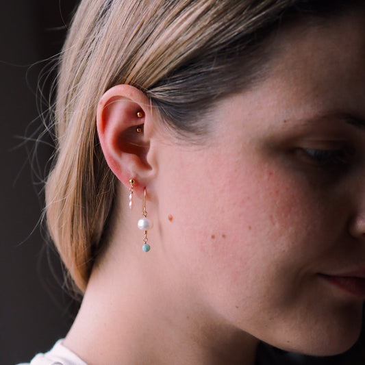 "Oh Mare" - Ohrringe mit Larimar und Süßwasserperle, 14k Goldfilled