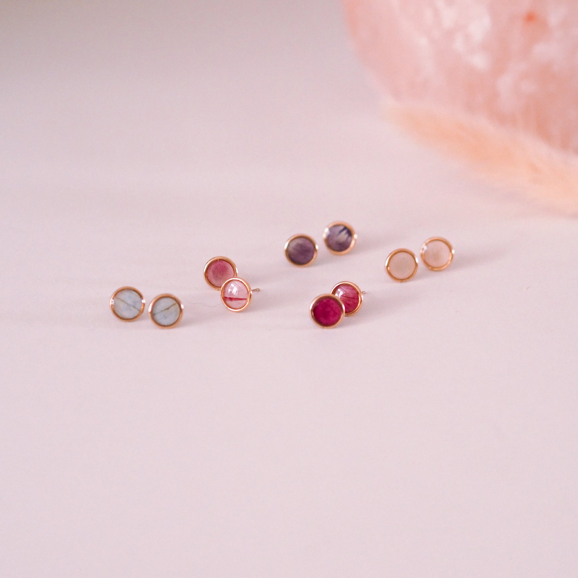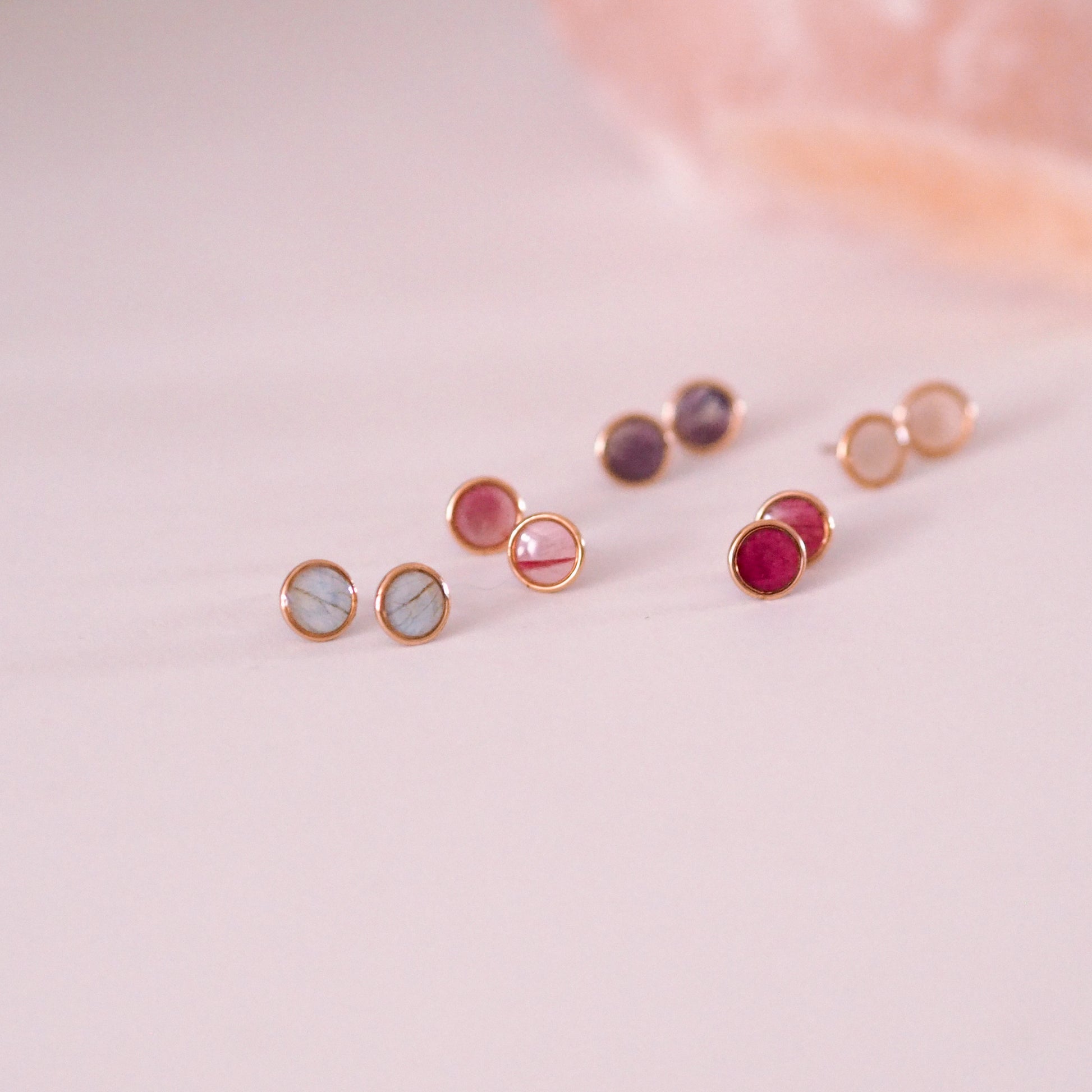 Entdecke natürliche Eleganz in Mini-Form: Die zarten 14k Goldfilled (=Goldfefüllt) Ohrstecker (8mm) werden liebevoll von Hand gefertigt und enthalten echte, gepresste Blüten wie Rose, Pfingstrose, Stiefmütterchen und Jungfer im Grünen. Jedes Paar ist ein Unikat - kein Blütenmuster gleicht dem anderen.