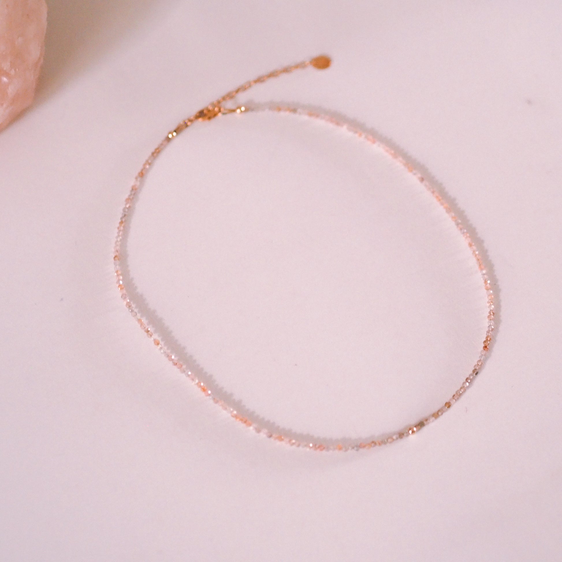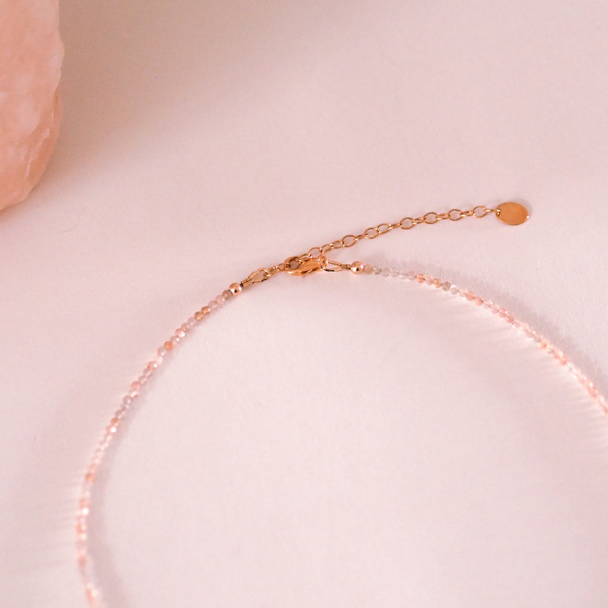 Handanfertigt mit pfirsichfarbenem Mondstein und 14k Goldfilled (= Goldgefüllt), verleiht diese Kette deinem Outfit einen besonderen und persönlichen Akzent. Ideal für den Layering-Look oder solo getragen - feminine Eleganz jeden Tag.