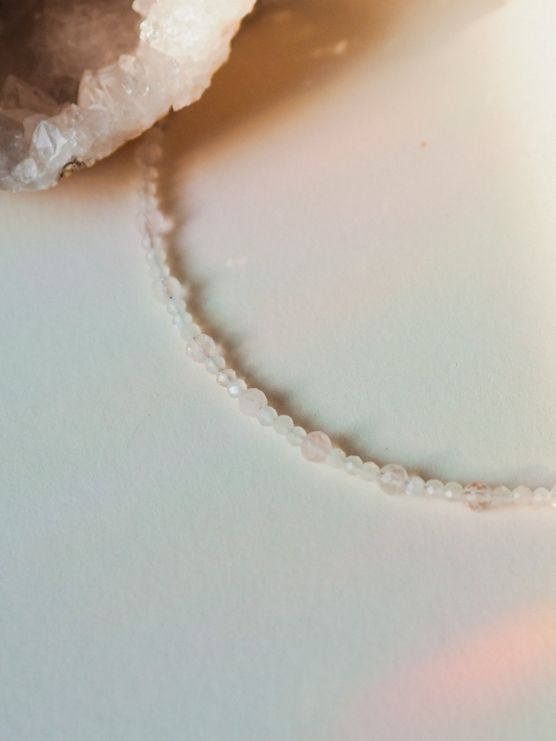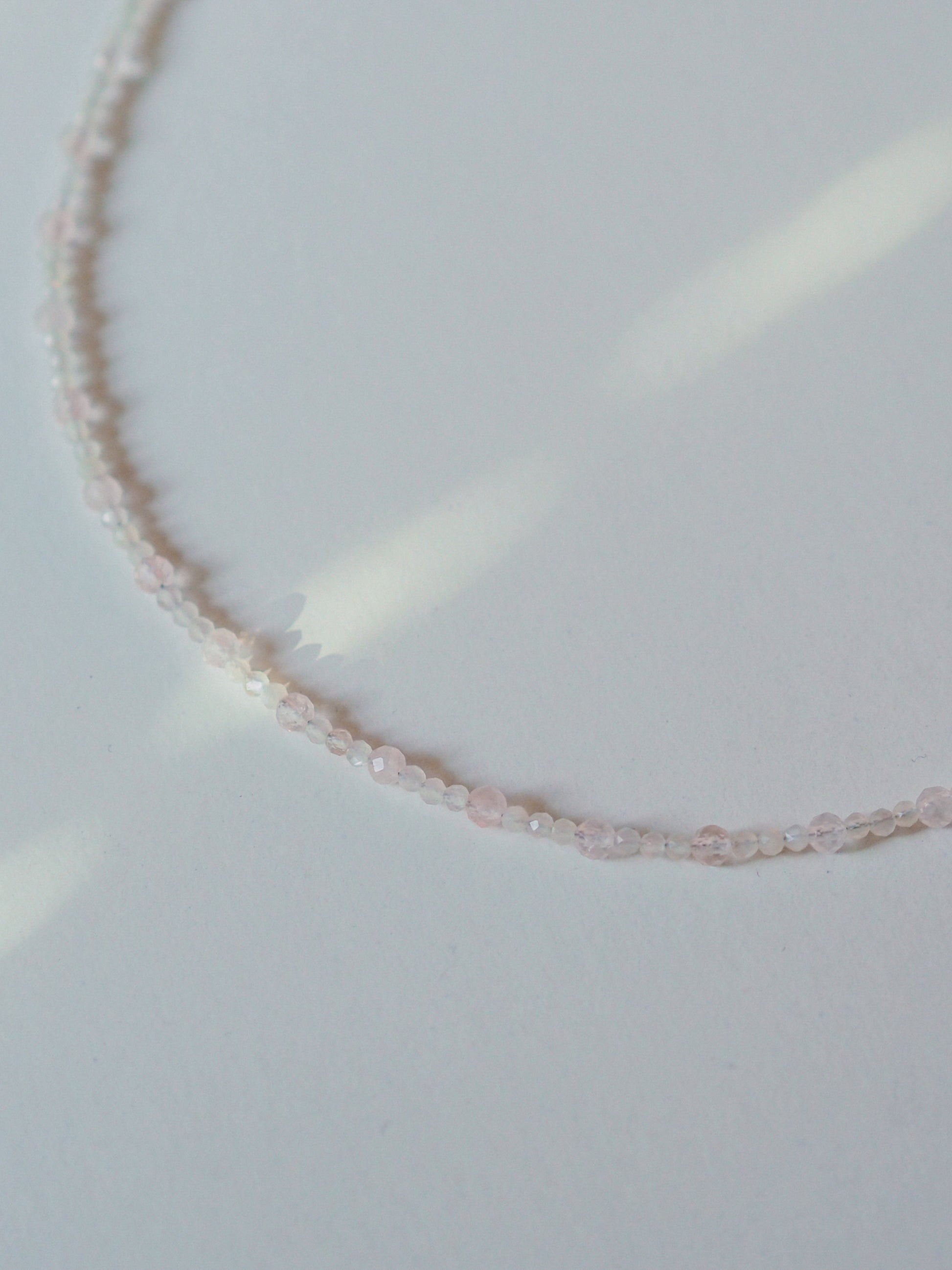 Diese handangefertigte Halskette vereint sanften, weißen Mondstein mit zarten Rosenquarz - ideal zum Layering oder solo getragen. Diese Kette ist wie ein kleiner Liebesgruß für dich selbst.
